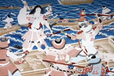 일본사에서 엄청나게 유명한 대해전大海戰인 서기 12세기 미나모토 요시츠네가 싸운 단노우라 해전도