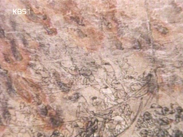 그림은 <조선역해전도>인데. 일본수군과 치열한 단병접전을 아무런 겁도 없이 벌여대는 용맹한 조선 수군임.