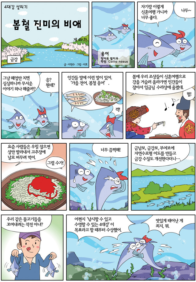 다행히 4대강 사업으로 정비가 이뤄졌으니 앞으로 웅어가 늘지는 모르겟다 니들 뒈질때 쯤에는...