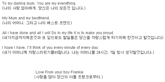 그리고 램파드가 어머니에게 보낸 편지.