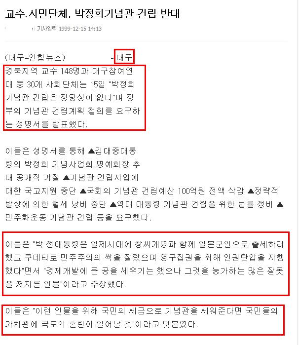 - 99년, DJ "역사가 존경해야 할 박정희 대통령" 이다.그를 부정하는것은 대한민국의 성공의 역사까지 부정하는것이다.