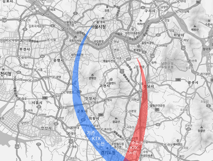 한마디로 수도권에 동쪽지역 사람들을 모두 커버하는 KTX 노선입니다.