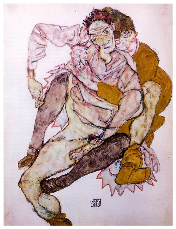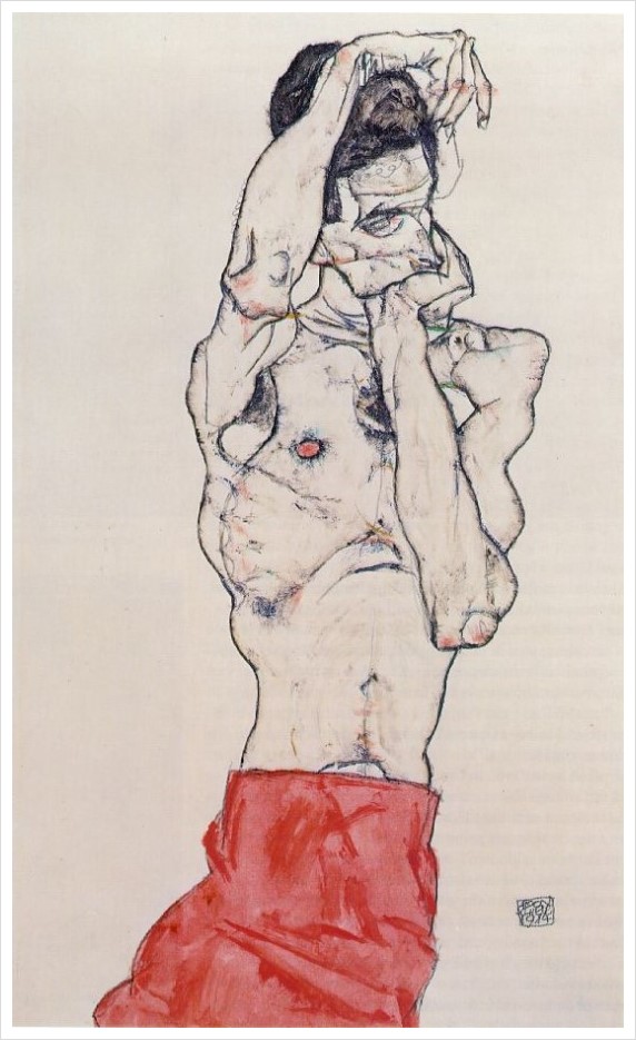 인간의 육체를 왜곡되고 뒤틀린 형태로 거칠게 묘사하는것이 바로 쉴레 작품의 대표적 특징이라고 볼수있어.