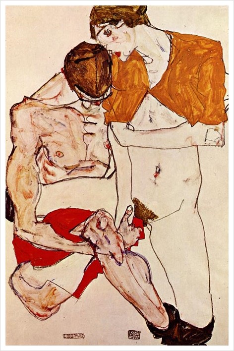 에곤 쉴레는 초기에 클림트를 연상시키는 그래픽적이고 드라마틱한 양식을 선보였어.