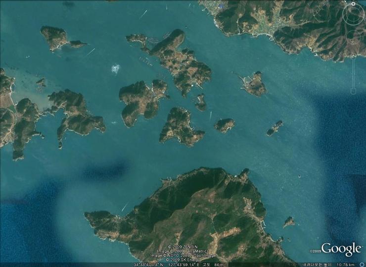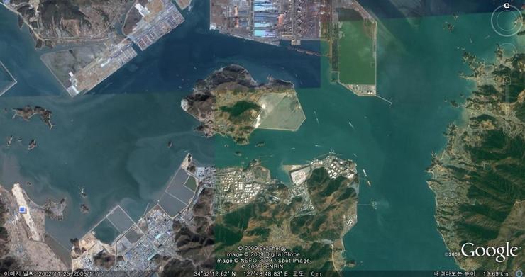 묘도 채석장(백색과 푸른색으로 보이는 부분)