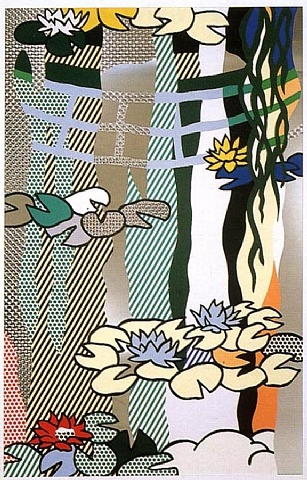 모네는 빛이 주는 느낌을 서정적이고 따뜻하게 접근한 반면 리히텐슈타인은 점과 기하학적인 패턴으로