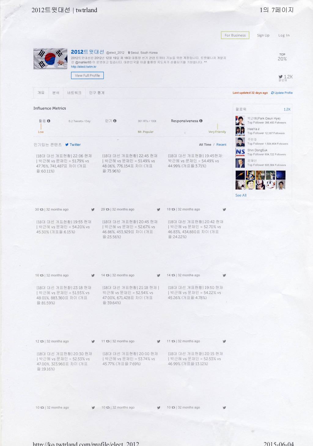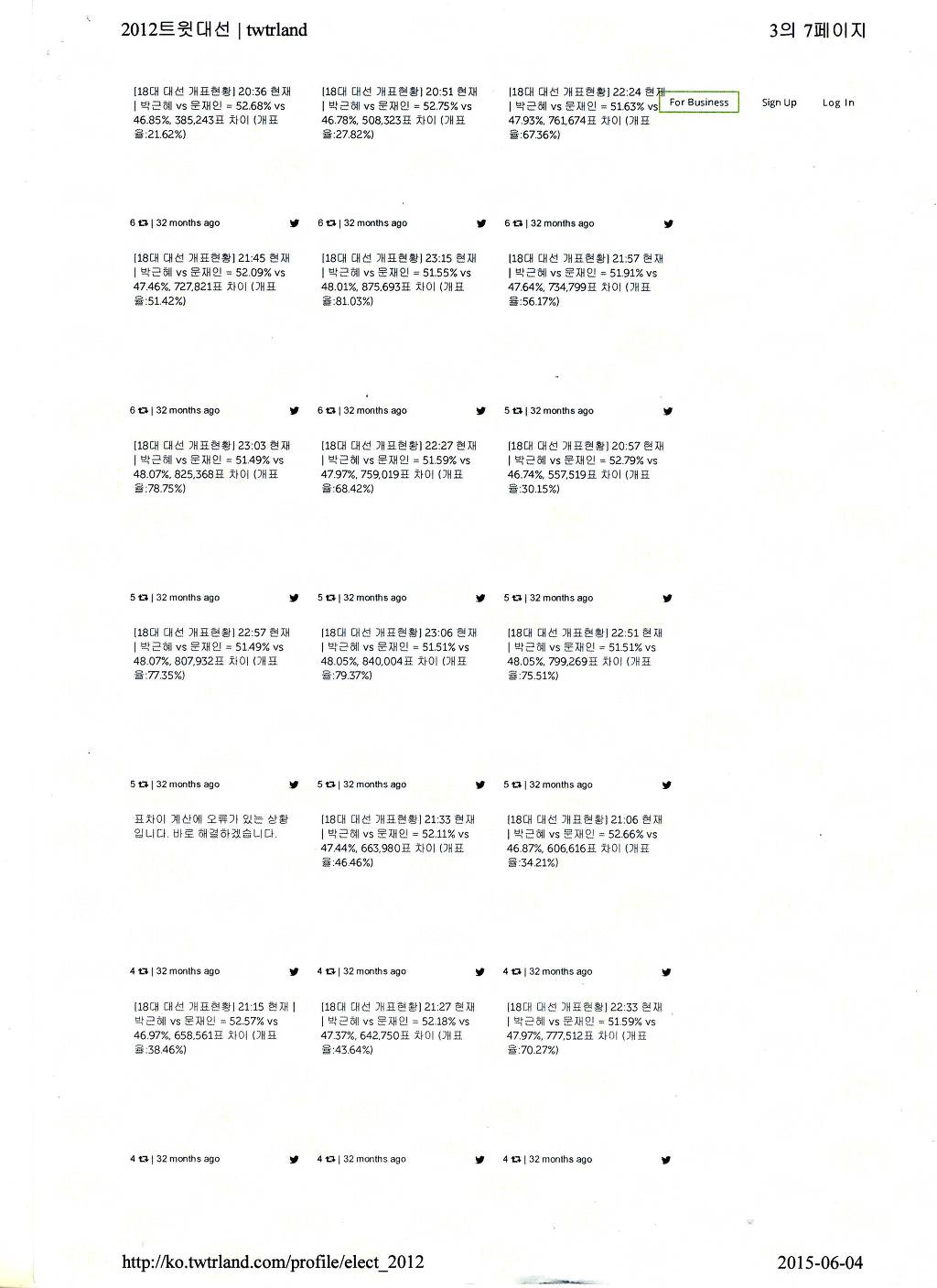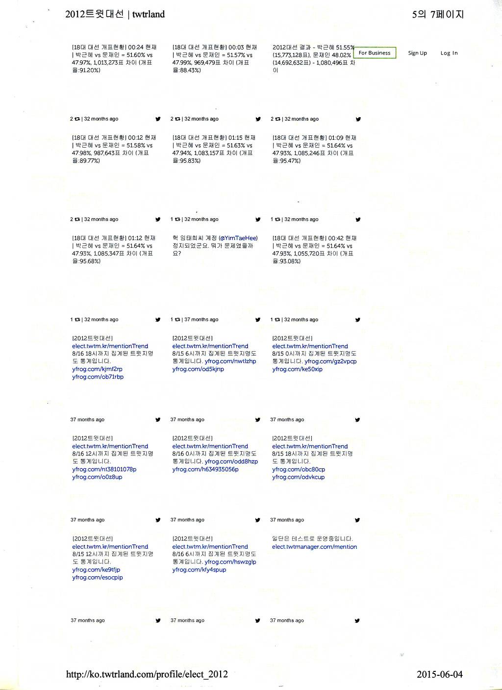 4) 동일 계정 내 ‘37달 전’(37 months ago) 표기 메세지는 세누리당 당내 후보 경선 일정을 고려하면 납득하시기 쉽습니다.