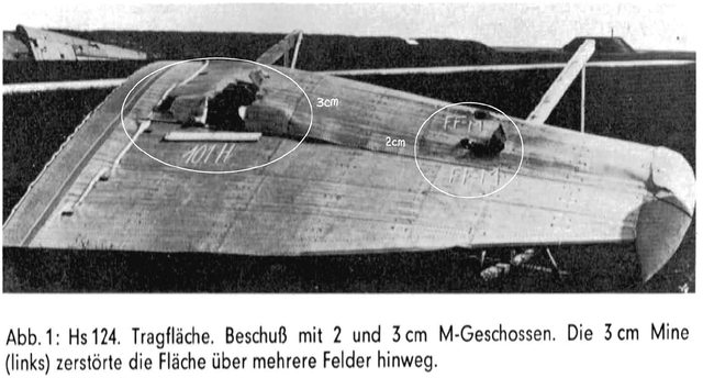 그리고 이 사진은 Hs 124 전투폭격기의 날개에 미넨게쇼스 고폭탄을 사격한 사진이지.